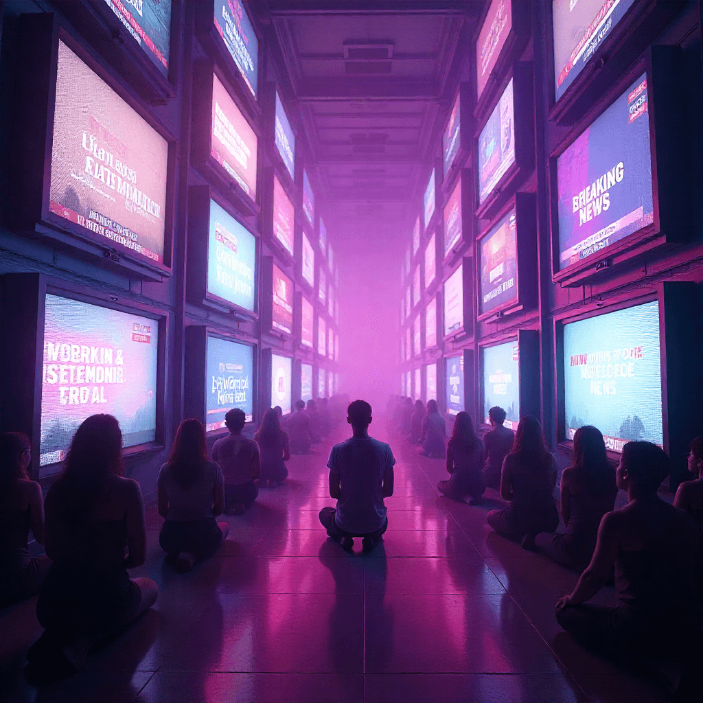 And the Prophet beheld the horizon, and it shimmered not with sunlight but with screens. And the people gathered before them in reverence, their faces illuminated by the sacred glow.